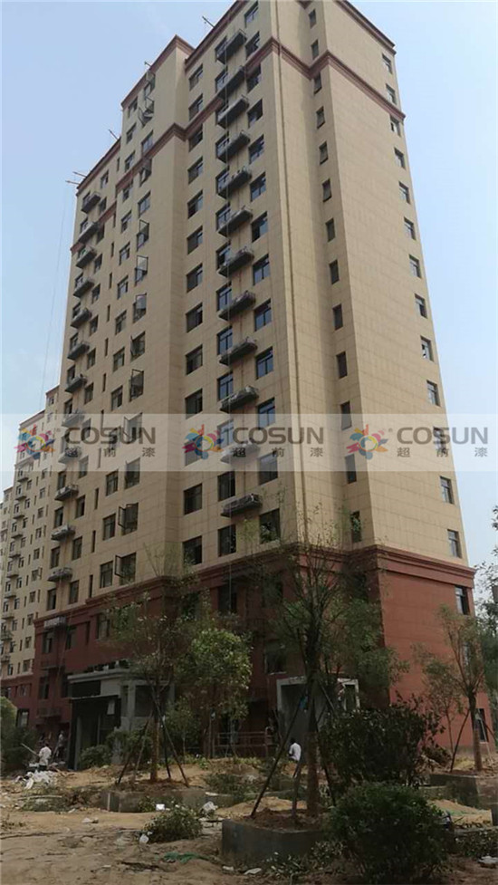 超前涂料 CCTV黃金展位合作伙伴河南鄭州楊金路新科技市場旁邊北徐莊安置房工地面積7萬平方,為了追求高端住宅的需要,能從視覺上彰顯整個建筑的高雅與莊重之美,甲方在經(jīng)過嚴(yán)格考察篩選后,超前涂料順利入圍。項目中指定超前真石漆做為外墻專用漆。