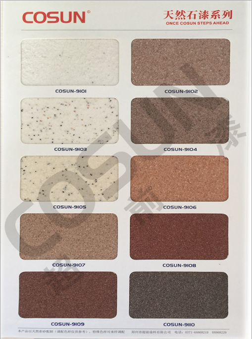 超前天然真石漆系列色卡由鄭州超前技術(shù)研發(fā)制作,色卡只展示公司個(gè)別產(chǎn)品,如果想了解更多有關(guān)真石漆相關(guān)產(chǎn)品可以點(diǎn)擊