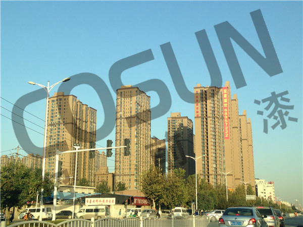 五、 超前漆生產(chǎn)出來的外墻真石漆是采用天然巖石碎粒特制而成、不易裉色、能保持長(zhǎng)久的外觀效果,另外還能適應(yīng)各種氣候,能夠保證漆膜不泛白不泛黃,還具有效阻隔水分進(jìn)入墻體,防止堿性物質(zhì)的析出;完工后的效果莊嚴(yán)肅穆,充分能展現(xiàn)出來天然石材的豐富質(zhì)感;